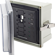 Boîtier de panneau pour disjoncteurs principaux ELCI et autres appareils à grand châssis. Conforme à ABYC E-11 lorsqu'il est utilisé avec un disjoncteur principal ELCI et monté à moins de 10 pieds de l'entrée d'alimentation à terre.