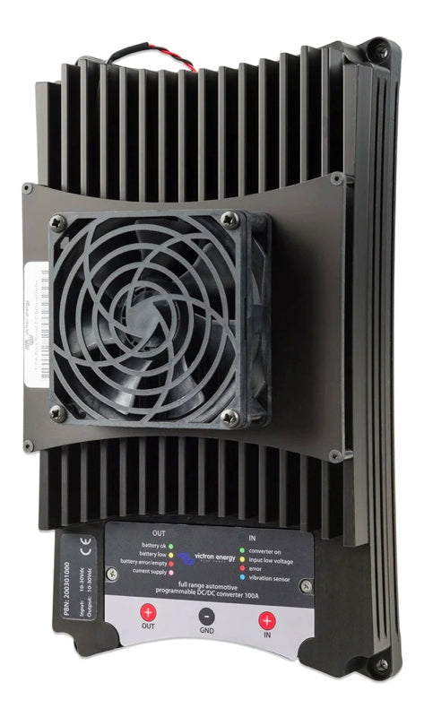 Le convertisseur DC-DC Buck-Boost 50A est un convertisseur DC-DC destiné à charger une batterie de service 12/24V dans les véhicules équipés d'une dynamo intelligente. Comme ces dynamos (alimentées par l'électronique embarquée des moteurs Euro 5 et 6) n'émettent pas toujours le courant de charge correct lorsque le moteur tourne, un convertisseur DC-DC est indispensable pour charger correctement la batterie de service.