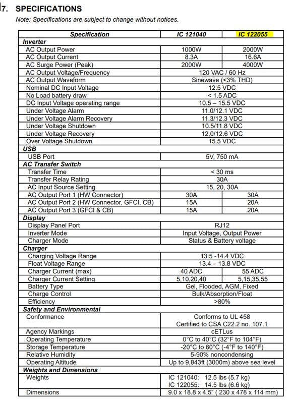KISAE 2000W pure sine wave inverter with 55 amp 12V DC battery charger