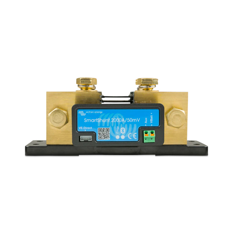 The SmartShunt is a good alternative to the BMV battery monitor, especially for systems where battery monitoring is required but less wiring and clutter is desired. The SmartShunt is equipped with Bluetooth, a VE.Direct port and a connection that can be used for: second battery monitoring, midpoint monitoring or a temperature sensor.