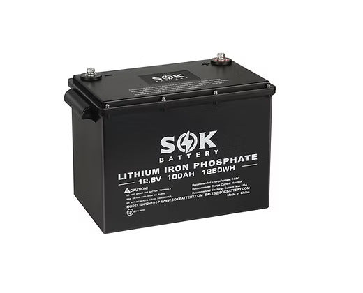 SOK - Batterie au lithium 12V 100Ah, Bluetooth et autochauffante avec boitier de plastique