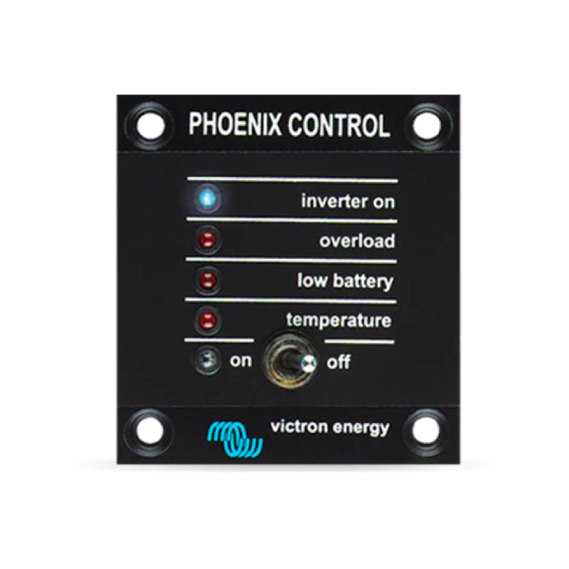 This panel is intended for Phoenix inverters equipped with a remote monitoring and control UTP socket. It can also be used on a MultiPlus Inverter/Charger when an automatic transfer switch with no load capability is desired. The brightness of the LEDs is automatically reduced during the night. Only for models: 12/1200, 12/1600, 12/2000, 12/3000, 12/5000, 24/1200, 24/1600, 24/2000, 24/3000, 24/5000, 48/3000 and 48 /5000.