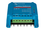 The Battery Balancer equalizes the state of charge of two 12V batteries connected in series, or multiple parallel strings of batteries connected in series. When the charging voltage of a 24V battery system increases to more than 27V, the Battery Balancer kicks in and compares the voltage on the two batteries connected in series. The battery balancer draws a current of up to 1 A from the battery (or batteries connected in parallel) with the highest voltage. The resulting charge current differential ensures that all batteries converge to the same state of charge.