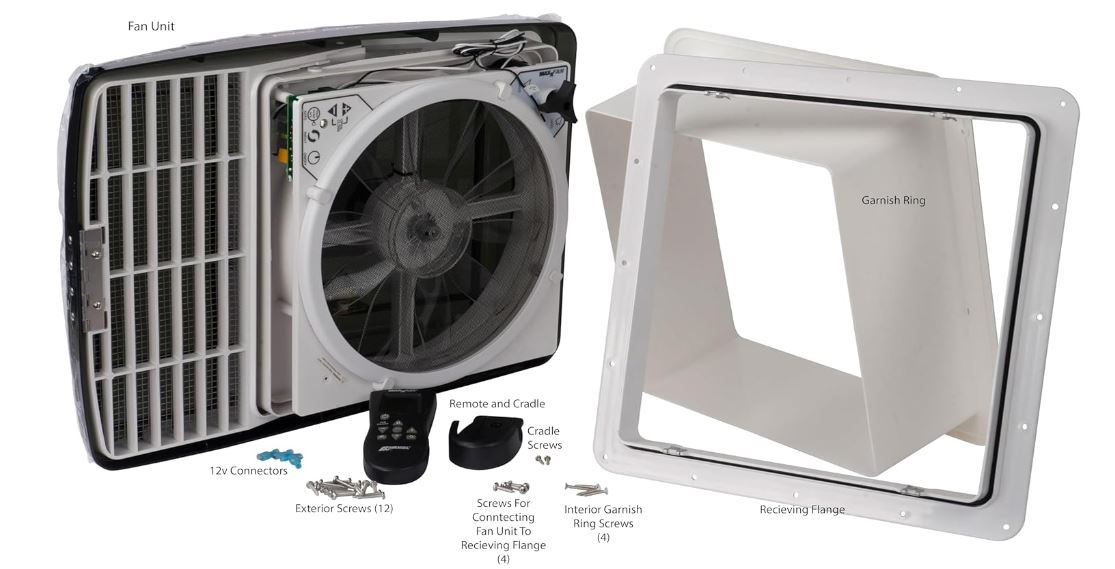 MaxxFan is the only complete roof ventilation system for vans and RVs that includes a fan, rain shield, and vent all in one. It fits all standard 14" x 14" roof openings. With its 10-speed fan, it brings in fresh air and eliminates hot air and musty odors.