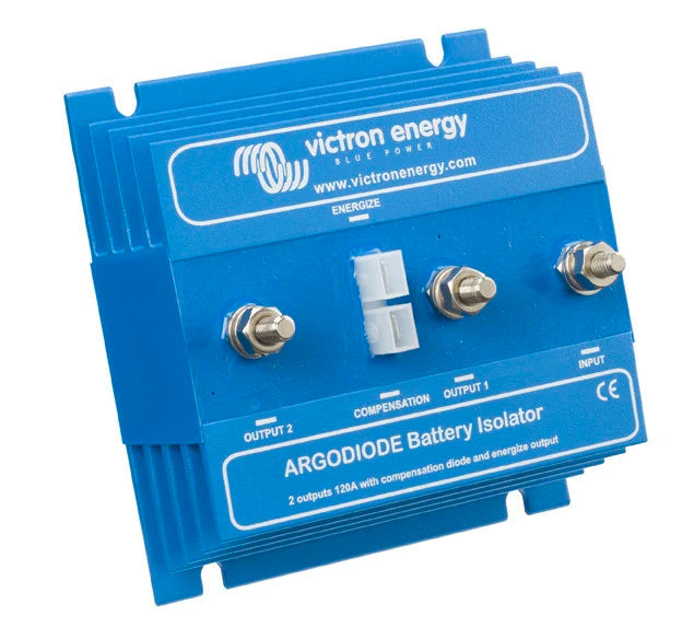 Diode battery isolators allow two or more batteries to be charged simultaneously from one alternator, without connecting the batteries together. Discharging the accessory battery, for example, does not cause the starter battery to discharge. Low voltage drop through the use of high efficiency Schottky diodes.