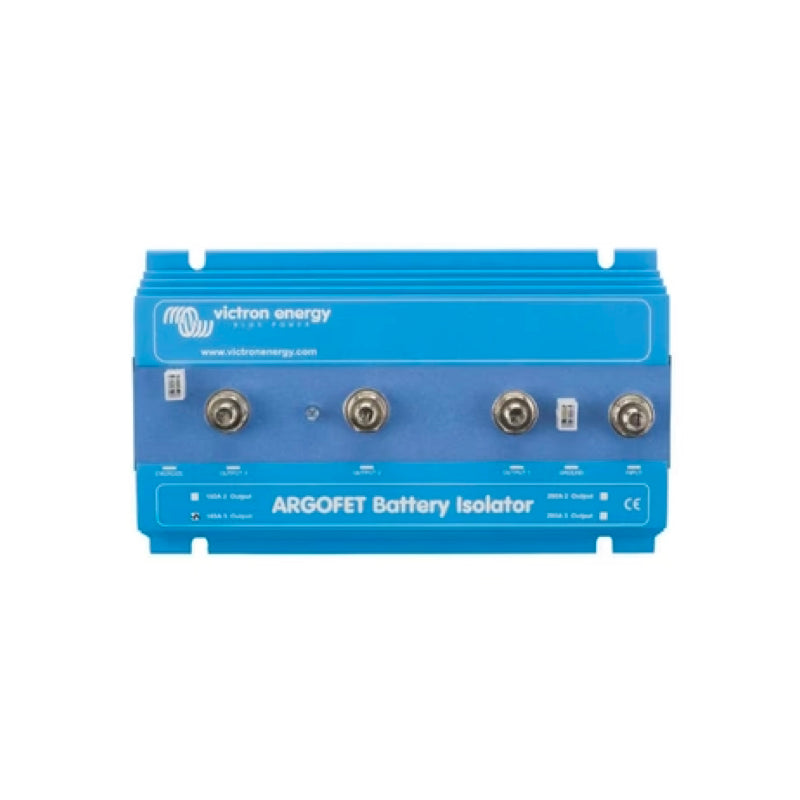 Like diode battery isolators, FET isolators allow two or more batteries to be charged simultaneously from an alternator (or single-output battery charger), without connecting the batteries together. Unlike diode battery isolators, FET isolators have virtually no voltage drop. The voltage drop is less than 0.02 volts at low currents and averages 0.1 volts at higher currents.