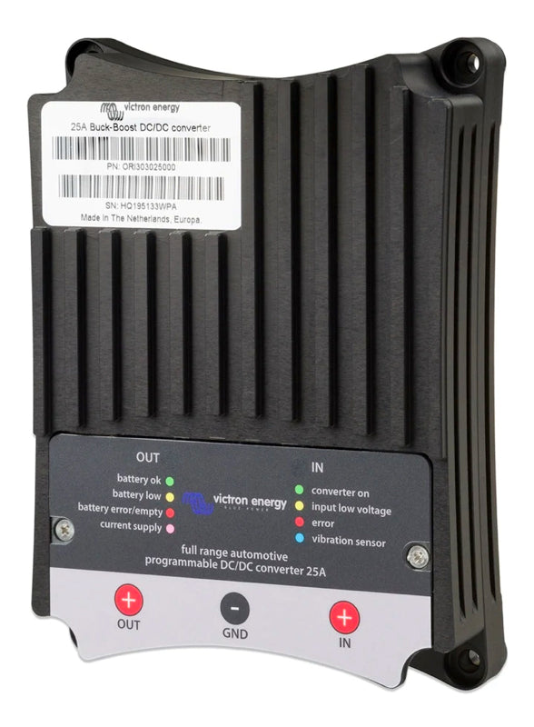 DC-DC converter for charging a 12/24V service battery in vehicles with an intelligent dynamo. The DC-DC Buck-Boost 50A converter is a DC-DC converter intended for charging a 12/24V service battery in vehicles equipped with a smart dynamo. As these dynamos (powered by the on-board electronics of the Euro 5 and 6 engines) do not always output the correct charging current when the engine is running, a DC-DC converter is essential to properly charge the service battery.