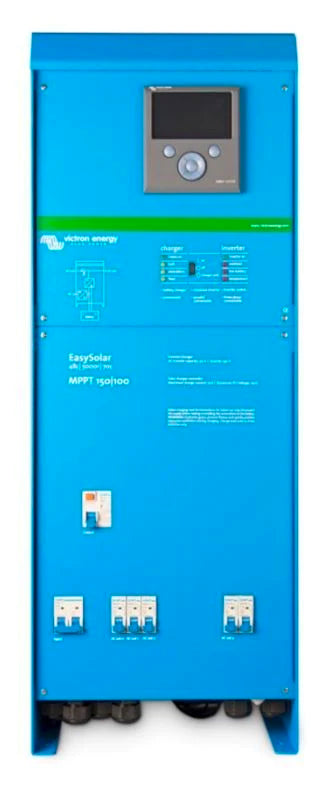 The EasySolar combines an MPPT solar charge controller, inverter/charger and AC distribution in a single package. The product is easy to install, with minimal wiring.